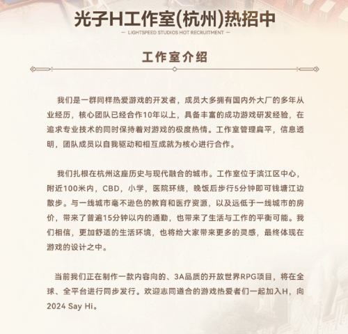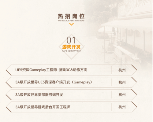 热招岗位涉及资深UE5工程师、3A级开放世界服务器开发、后台、关卡设计、动作场景设计、战斗策划、角色建模、特效以及发行等多个岗位。
