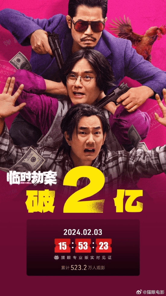 据猫眼专业版数据,电影《临时劫案》上映16天 ,总票房破2亿。目前豆瓣评分6.2分。