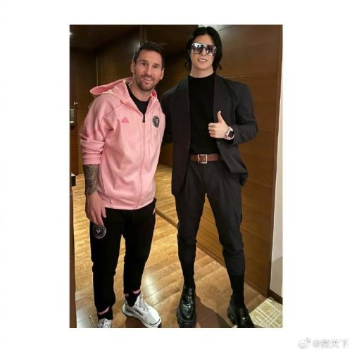 日本著名牛郎罗兰的工作室晒出了罗兰跟梅西的合照。照片中的罗兰穿着一身黑色西装,戴着墨镜,跟身边的梅西一起合照。
