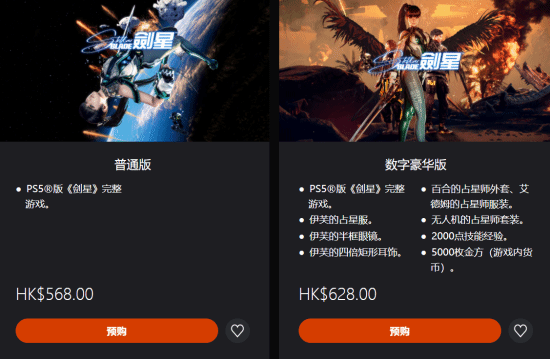 《星刃》港服PS商店预购已开启,普通版售价568港币(约合人民币522元),豪华版售价628港币(约合人民币577元)。游戏将于4月26日正式发售。