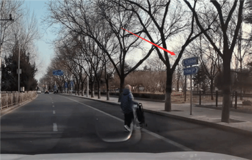 从其公布的行车记录仪视频看,当时他驾驶这台M5智驾版从北京三环向辅路上开去,然而在主路与辅路之间的绿化带上,一名老人已经“蛰伏”,也不管路上车辆,就自顾自地走了出来,目光盯着路对面,迈步就要往前走。