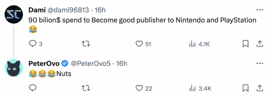 有玩家在评论区调侃:花费900亿美元成为了任天堂和PlayStation的优秀发行商。