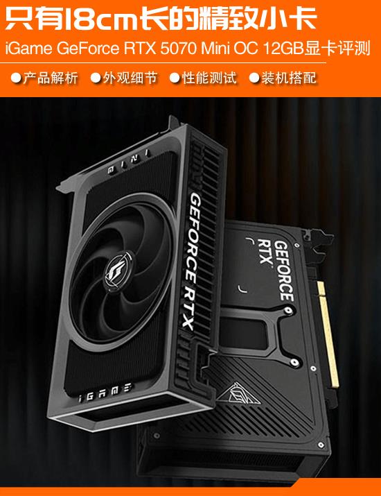 小编和大家说说ITX,虽然在DIY市场里属于比较小众的类型,产品种类没法跟ATX比,厂商也不常出新品,但七彩虹算是个例外,他们一直在推出超短尺寸的单风扇散热器显卡。上个月底,他们带来了全新的iGame Mini系列显卡,我们这次拿到的就是里面规格最高的型号——iGame GeForce RTX 5070 Mini OC 12GB。