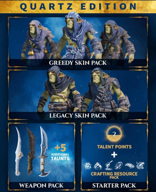 石英版(豪华版):PC版约168元。包含提前2天游玩资格、额外皮肤和资源包。