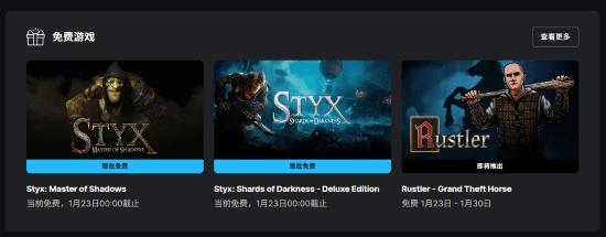 Epic游戏商城这周又有免费游戏可以领取啦!这次是《冥河》系列的《Styx: Master of Shadows》和《Styx: Shards of Darkness》,一起价值124元,领取截止到1月23日凌晨。接下来,1月23日《Rustler(Grand Theft Horse)》也能免费领,记得在1月30日之前拿下哦。