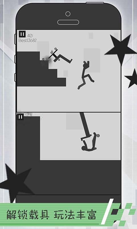 休闲减压老少皆宜的火柴人手游,1080度花式旋转自由落体,化身火柴人释放碰撞欢乐,更有丰富道具和地图解锁,好玩停不下来,表演令人瞠目的体操落地项目,究竟撞哪得分更高? 道具同样带有真实碰撞效果,加上独特的背景音乐和清脆的碰撞声,全新火柴人休闲大作爆笑来袭!★游戏特色★- 全新体验,20多个地图,12种载具,挑战作死极限。- 玩法简单,轻触屏幕立即出发。- 完美发泄,逼真的骨骼系统和独特的火柴人世界碰撞规则。