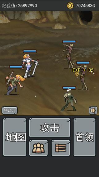 3、首领战,在首领战中无法点击攻击键,让勇者发动攻击也无法提升等级。