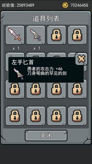 2、升级:战斗后会获得经营,可以提升勇者等级。
