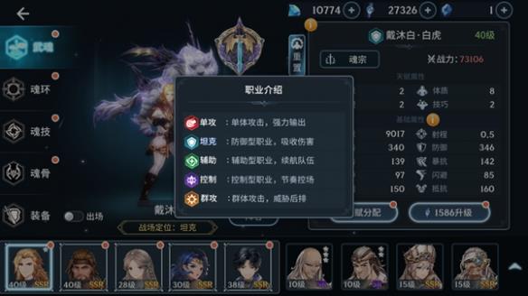 在游戏中,一共有五个不同的职业,分别是单攻,坦克,辅助,控制,群攻。