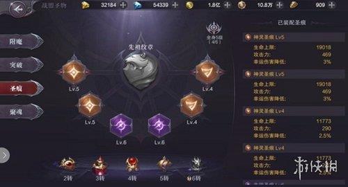 在达到2转后,可以开启圣物功能。激活圣物需要大量战功,并在战盟的战功商店中兑换获得相关材料。附魔可以为勇士增加基础属性、技能伤害、卓越伤害以及总伤害,但需要附魔等级达到要求后逐步激活。