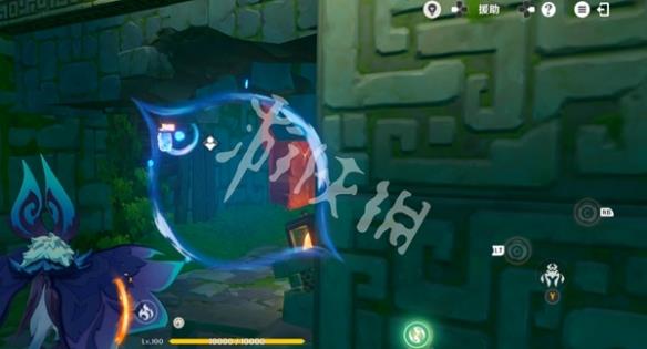 4、瞄准墙上的涂鸦,并长按普攻键吸取风场。