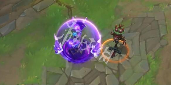 2、被动技能:目标脚下会出现紫色光圈,头顶有两个橙色光点。