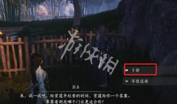 3、第一个对话选择卜卦。
