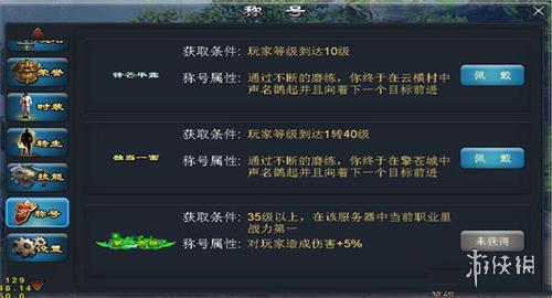 称号可以让你更拉风、与众不同,让你更标新立异、独具一格。稀有称号还有属性加成。称号系统与成就关联,部分称号可能通过其他游戏功能开启。