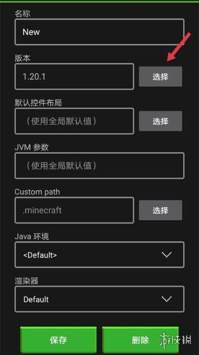 3、名称随便写,版本点选择选一个自己想玩的,其它的选项看不懂就全部默认,然后点击保存。