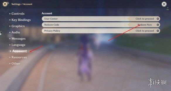 4、然后找到Account按键并点击,再点击Redeem Code选项。
