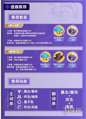 主词条方面:头部和手部的主词条固定为生命值和攻击力属性,躯干可选择暴击率或暴击伤害,脚部选择攻击力或速度;位面球选择量子属性伤害加成;连结绳选择攻击力或能量回复效率。