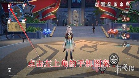 1、进入游戏,点击左上角的手机图案。