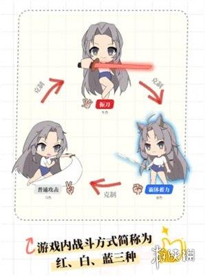 只要你会玩石头剪刀布,就能掌握游戏的基础战斗方式,游戏内的战斗方式简化为红、白、蓝三种。