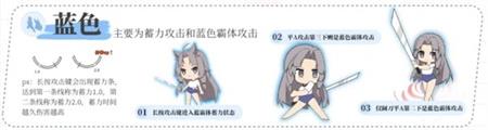 蓝色招式主要是蓄力攻击和蓝色霸体攻击,长按攻击键可进入蓝霸体蓄力状态,长按时间越长,蓄力时间越久,伤害也就越高,平A攻击第三下则是蓝色霸体攻击,同样,阔刀由于机制不同,其平A攻击第二下为蓝色霸体攻击。