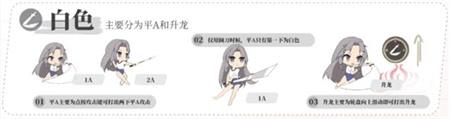 白色招式主要分为平A和升龙,平A主要是点按攻击键可打出两下平A攻击,不过有些武器的机制不同,例如使用阔刀时,平A只有第一下是白色招式。