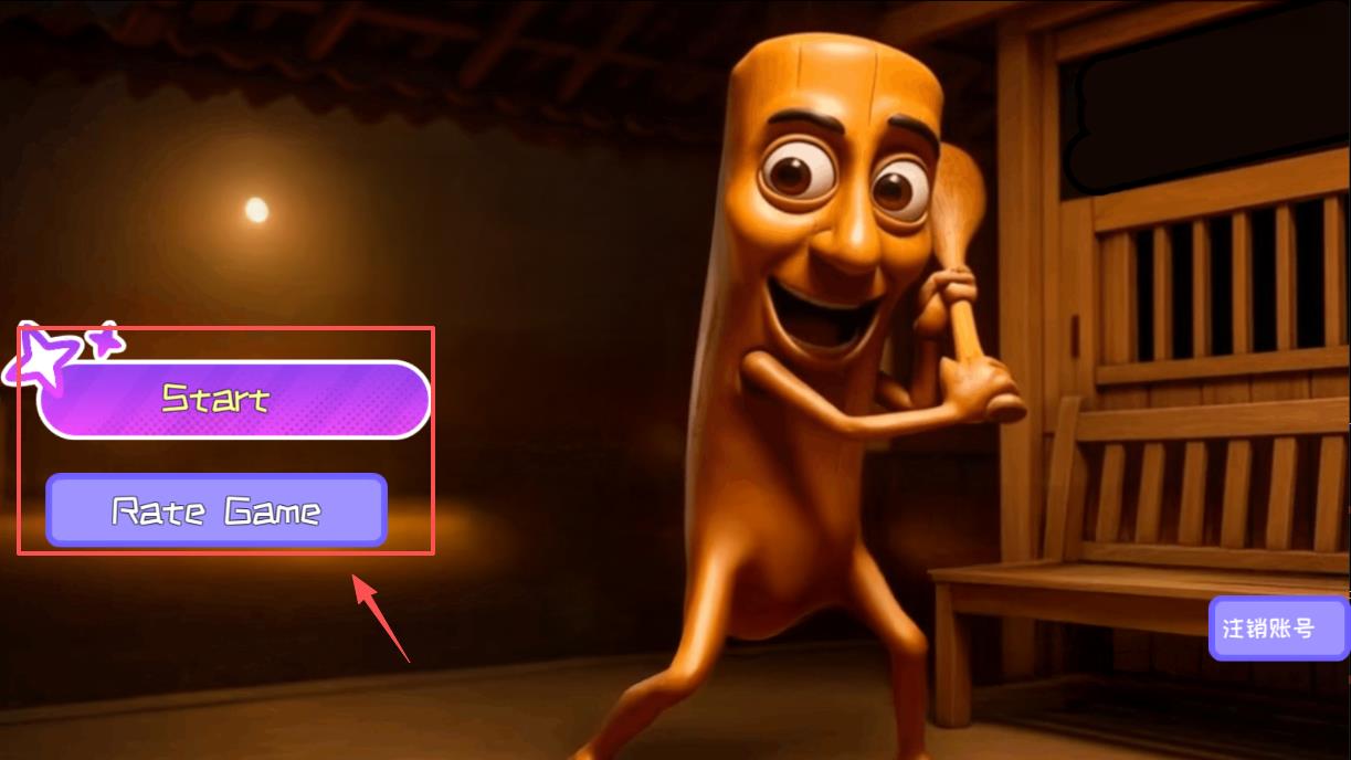 2、主界面左侧有开始和评分按钮,点击开始就能进入游戏啦。如果想切换账号,可以找右上角的注销按钮哦。背景和角色颜色对比鲜明。