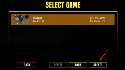偷盗模拟器新手玩法教程1、点击CREATE按钮,创建新游戏存档记录。