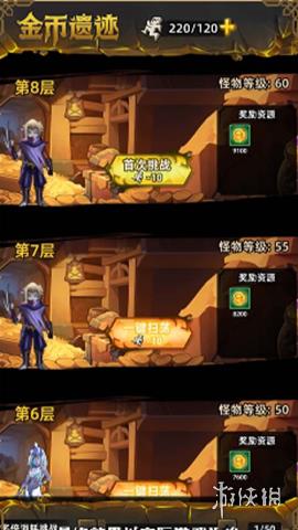 通关2-1boss关后解锁,玩家可通过挑战金币遗迹获得大量金币。金币遗迹等级越高,获得的金币数量越多。金币在游戏中是消耗量极大的养成资源,占据很重要的地位。