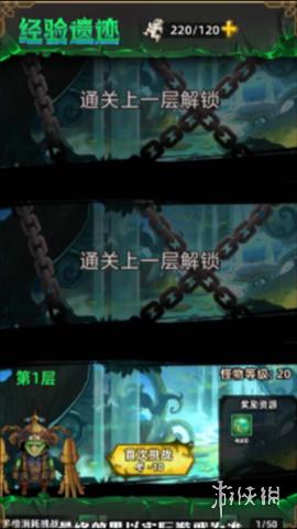 通关2-2boss关后解锁,玩家可通过挑战经验遗迹获得大量经验,用于提升英雄等级。经验遗迹等级越高,获得的经验数量越多。