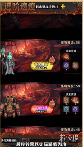 通关3-2boss关后解锁,玩家可通过挑战进阶遗迹获得大量进阶石,用于英雄进阶。进阶遗迹等级越高,获得的进阶石数量越多。
