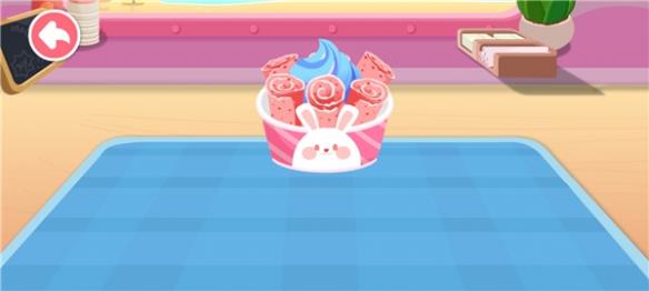 6、随后滑动屏幕中的铲子,对其翻炒,即可获得酸奶卷。