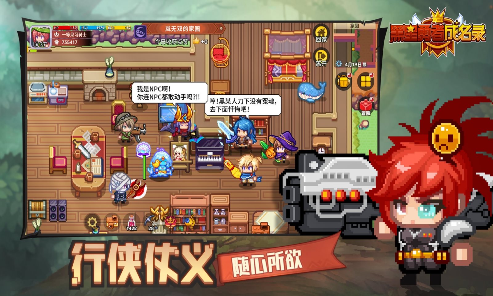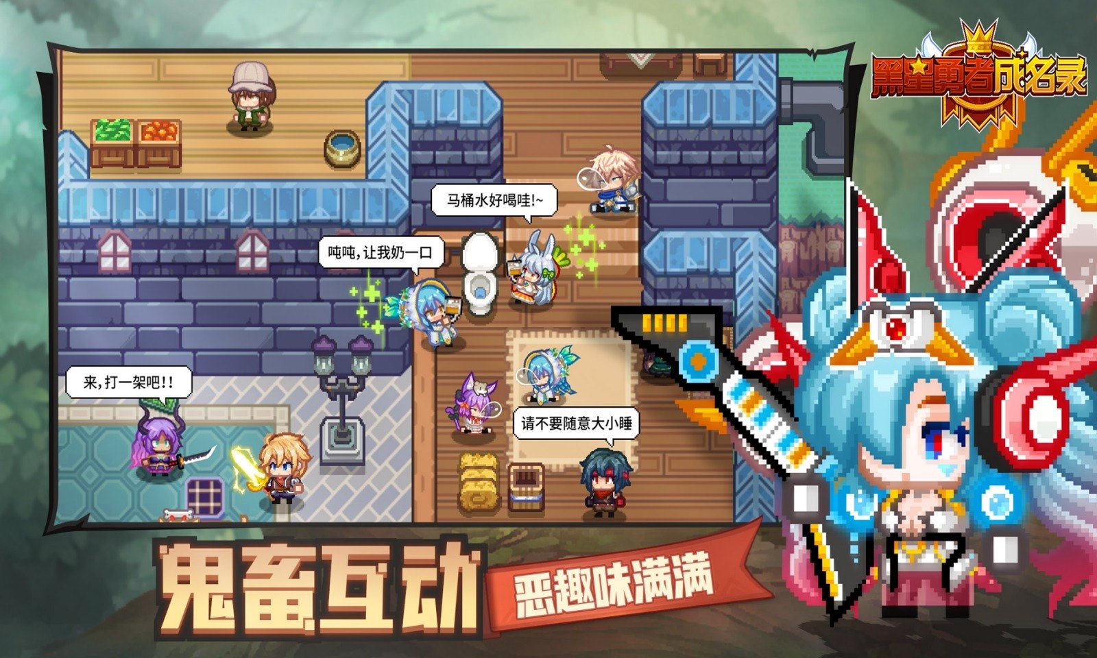 《黑星勇者成名录》是一款横版像素风鬼畜冒险RPG游戏。喝马桶水获得BUFF,睡一觉属性蹭蹭蹭上涨,背靠背战斗的伙伴秒变人形坐骑!这个充满荒诞设计的像素风RPG,将带你踏入一个诙谐又充满探索性的超自由开放世界。闯荡随机变化的Roguelike地宫,享受满屏爆装的快乐;驰骋在无等级限制的超大地图,体验不被操纵的自由;随性搭配装备与伙伴,挑战各种BOSS;还能结识好友组建公会,争夺塔尖的最高荣耀。每一次冒险都将书写属于你的奇妙篇章,战斗之余还可以经营农场,种菜、养小动物、钓鱼,在紧张的冒险中享受轻松与惬意!
