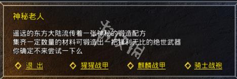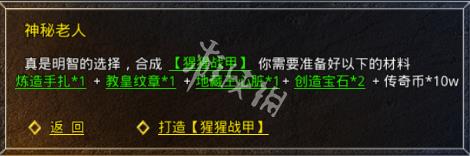 1、大致的过程跟合成武器差不多,需要的材料也是一样的,骑士战袍也是跟绿玉屠龙一样,开服45天后开启。