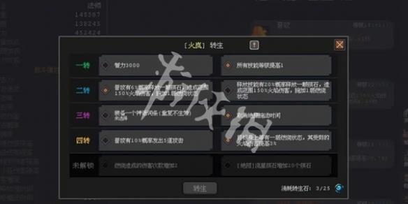 5、四转:选右(燃烧增伤),可以最大化燃烧层数的增伤。