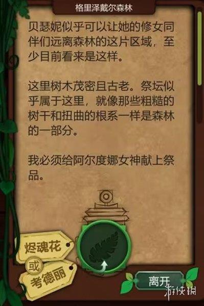 1、如果你选择了驱魔仪式,前往N9举行驱魔仪式,在祭坛上放置以下植物:恶魔睡帽、疾网藤、寡妇哀、长羞草和古翠草。
