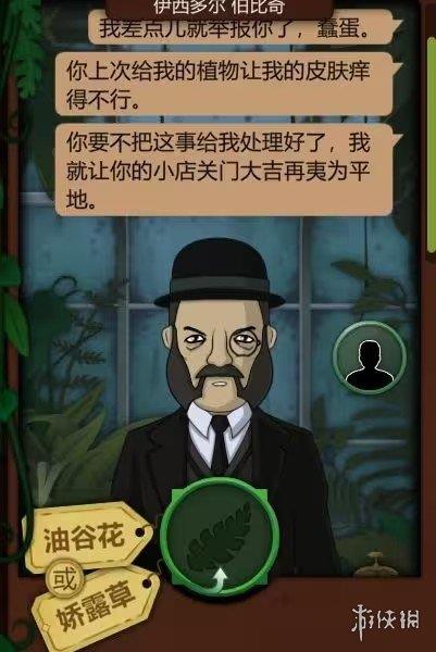 4、若选择了【娇露草】,在第五天,伊西多尔伯比奇会第三次来访,并威胁要举报玩家。这时,又一个分支选择出现。