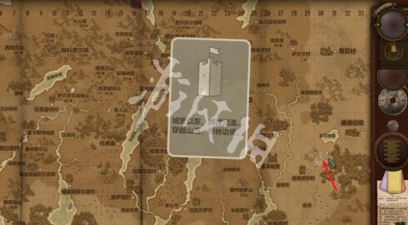 城堡以东,跨过河流,穿越山道,森林边缘。根据提示,前往地图K行的塞泽城堡,往东到森林边缘的K31。
