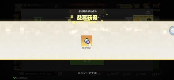 4、绑定手机号,绑定完成手机可获得100绑定钻石