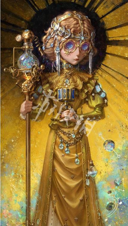 8、【稀世时装】盲女-玛利亚公理身穿华丽的金色长裙,华贵的裙子上缀着彩色矿石,为她增添了几分神秘。