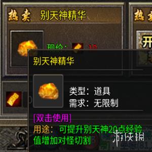 功效-可提升别天神20点经验值,并增加对怪的切割能力。