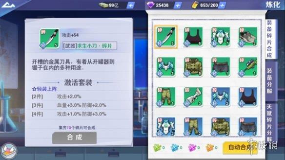 装备碎片凑齐以后,从主界面的炼化进入到合成页面就可以合成强力的套装了!