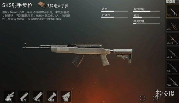 7、SKS射手步枪:这款轻机枪的单发伤害高且射速快,但连续射击时难以控制。玩家需要掌握节奏,合理使用,才能发挥其最大威力。