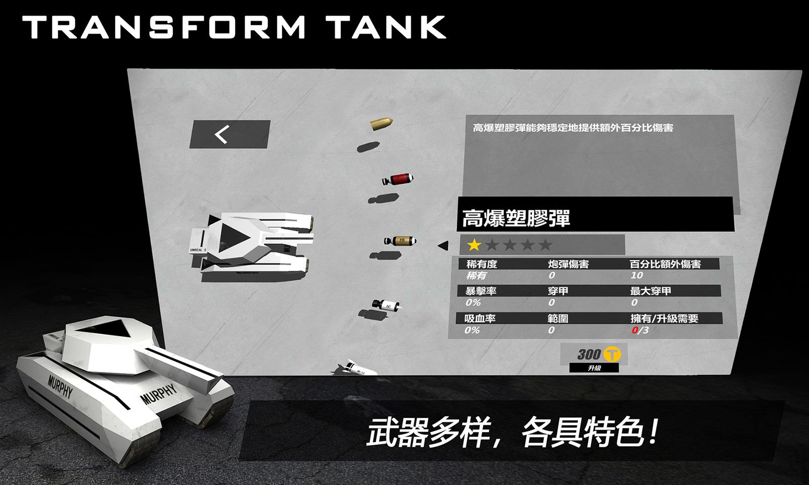 《变形坦克2》是一款基于3D物理学,拥有真实物理碰撞和特效的射击游戏。在游戏中,坦克能够爬坡,翻越障碍,并且能够炫酷变形,拥有技能!游戏在1代基础上增加了PVP联网对战,目前拥有:3V3团队战,占领据点,大乱斗模式等~这不是一款千篇一律毫无创新的二战坦克游戏,而是一款极富创意精心设计的创新的坦克手游!