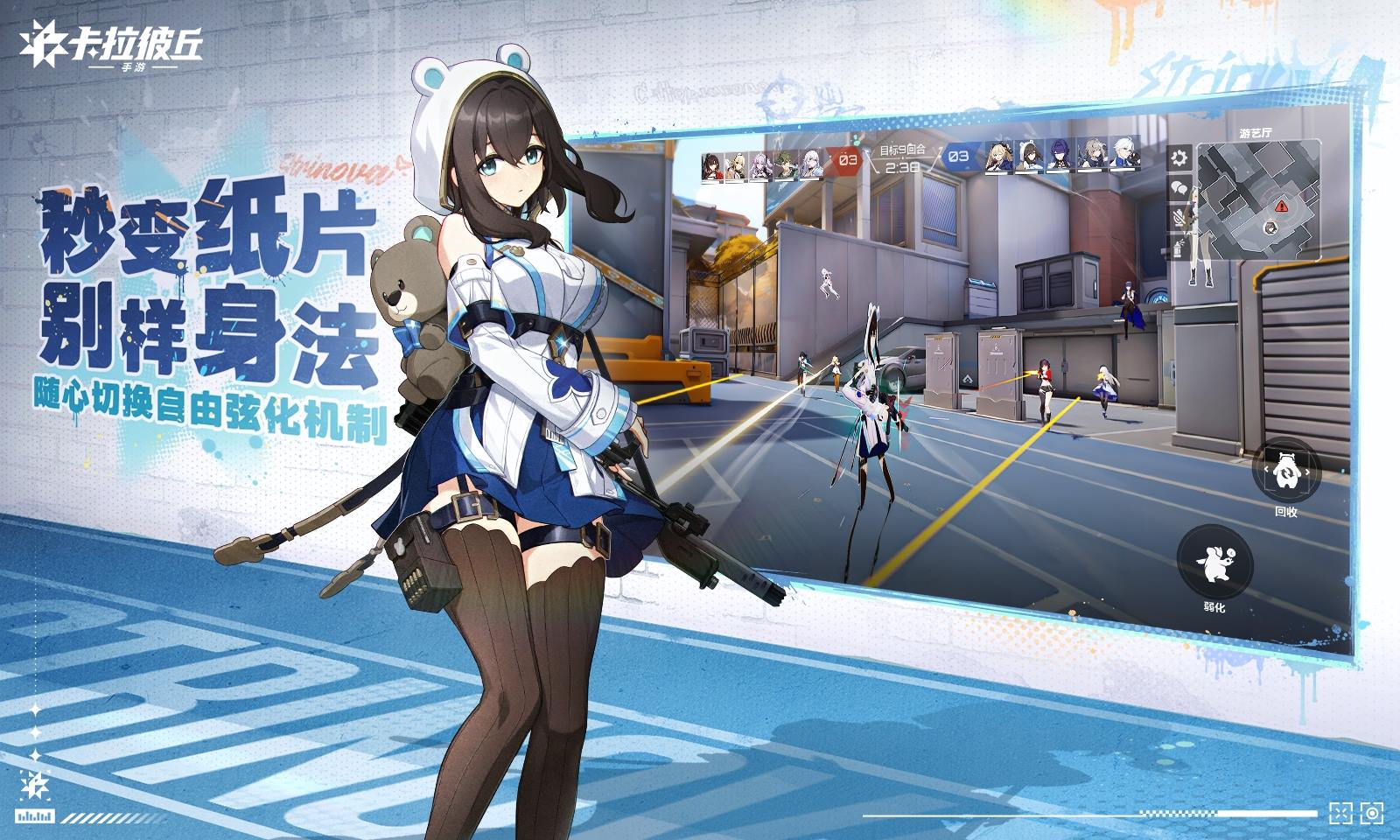《卡拉彼丘》手游是一款由创梦天地出品,具有颠覆性特色的动漫风格战术射击游戏。以独创的「3D/2D弦化」系统为核心,构建出颠覆传统的对战博弈。在游戏中你将化身承载人类未来的超弦体,与队友紧密配合,在不同游戏模式中,制定不同战术,以在攻防模式中赢下对局为最终胜利目标。★游戏特色★- 一键变身纸片人,秀出你的飘逸身法:独创弦化机制,实现2D纸片形态与3D真实形态无缝切换!- 更容易上手的射击体验:无论你是射击小白还是战术大师,辅助瞄准和自动开火都会帮你简化繁锁的射击过程,迅速成为卡拉彼丘高手!- 与超能美少女并肩作战,颜值与火力的双重暴击:多位技能各异的超弦体,五大定位构筑出攻防一体的职业协同体系!- 立体地图战术攻防,和队友一起玩把大的:游戏内涵盖极限推进、爆破入侵、无限团竞、个人乱斗多种攻防模式,和队友一起灵活搭配阵容!- 休战期特别权限,宿舍养成甜度拉满:游戏累了?没关系!休战期也能找到惬意休闲时光!独创宿舍系统,培养你和心仪小姐姐的情感羁绊!