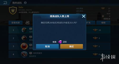 当战队人数达到上限,无法继续接纳新成员时,我们可以选择扩充战队以增加成员空位。只有指挥官和副指挥官有权限进行战队扩充。将战队容量从10人扩充到20人需要消耗200钻石。