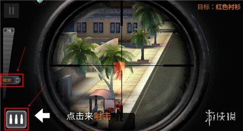 4、通过移动枪口来瞄准敌人,使用左侧按钮对倍镜进行放大和缩小,点击子弹进行射击。