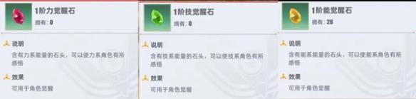 3、觉醒石依据力、技、能三大属性被划分为三类:力觉醒石、技觉醒石、能觉醒石。