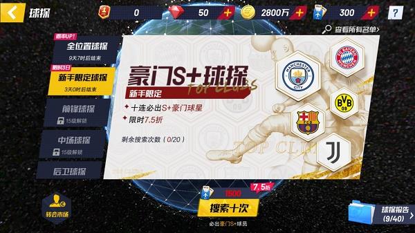 (4)豪门战役:累积球员情报,需准备1名S球员和1名S /CL球员进行兑换。