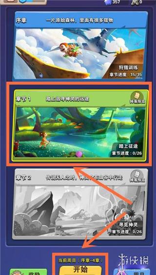 3、接着,挑选你想要挑战的冒险章节,并点击下方的开始按钮进入该章节。