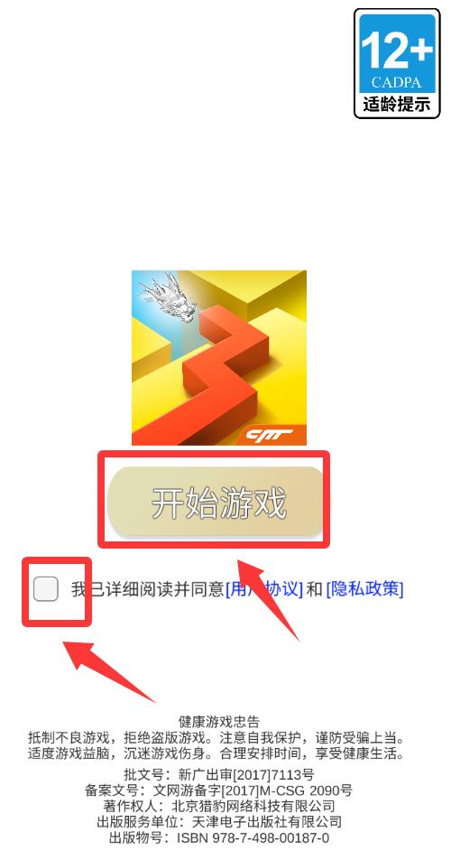 跳舞的线2.7.74.00无限方块新手登录教程1、点击红色框框里打√然后点击开始游戏。